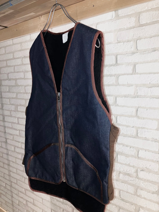 Vintage Design Boa Liner Denim Vest "Herringbone Denim!!!"