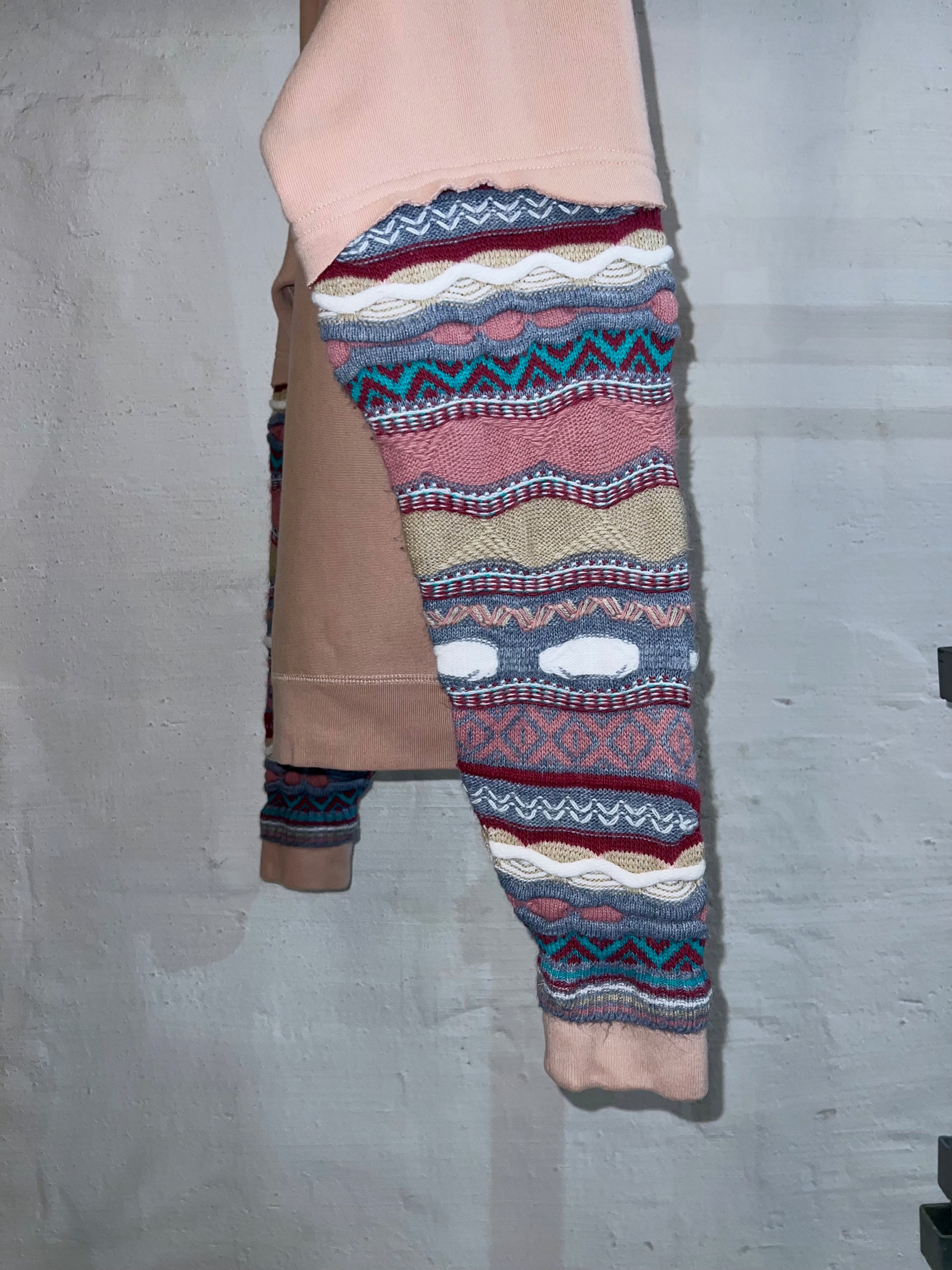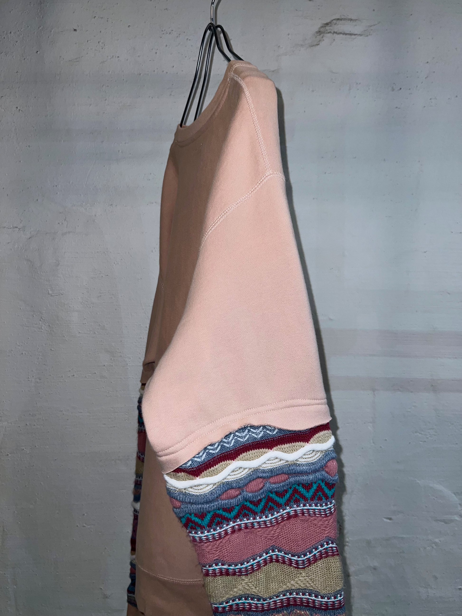 レアカラーのヘビーオンススウェットに、犬夜叉のスウェット、ピンクのクージースタイルセーター、の異なるテクスチャーを大胆に再構築しています。