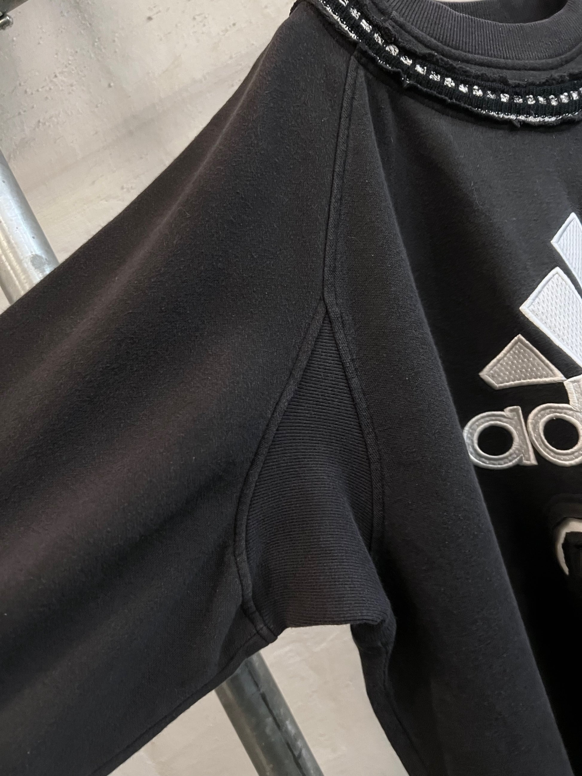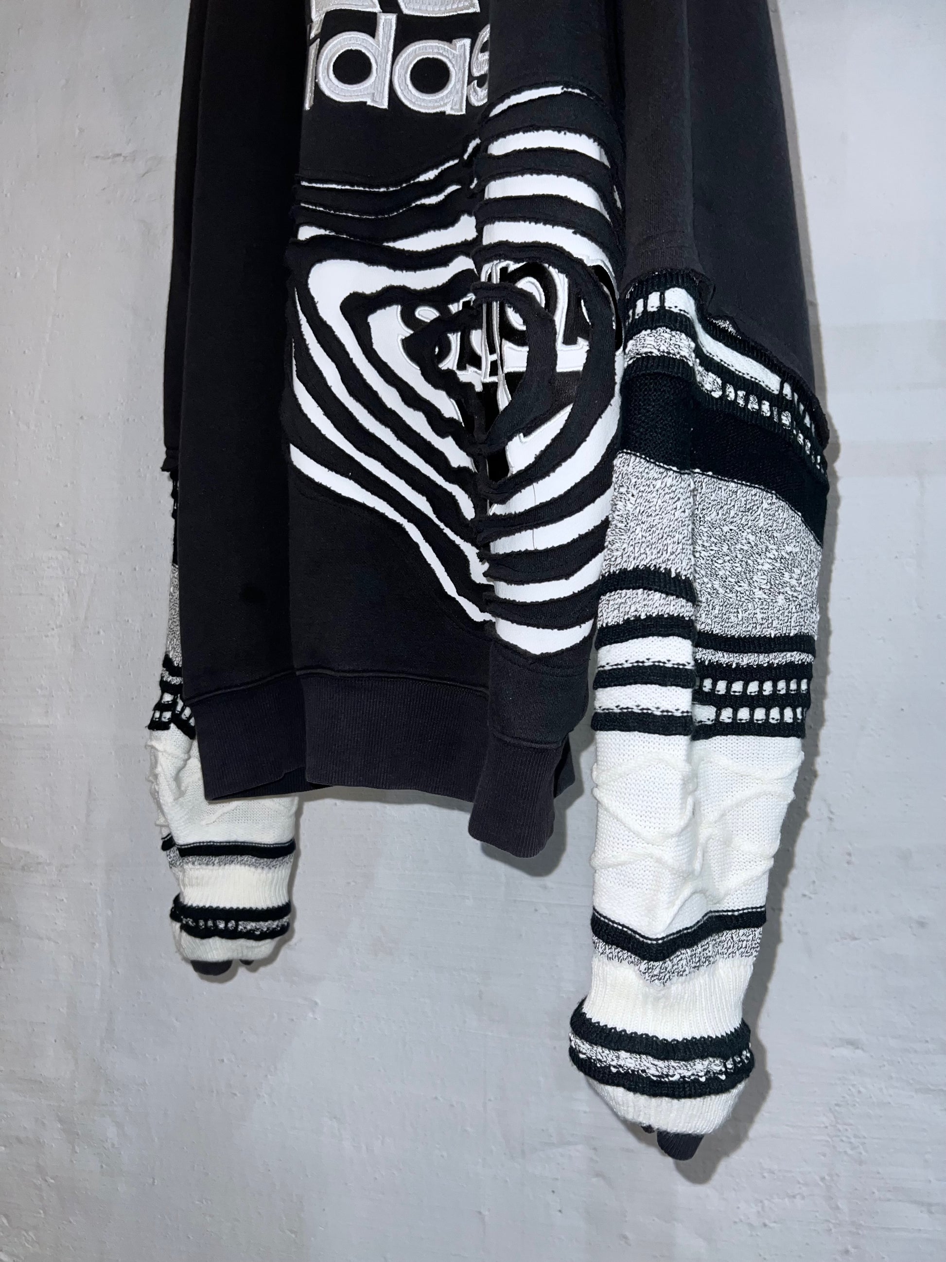 ヴィンテージのアディダススウェット2枚と、クージースタイルセーターの異なるテクスチャーを大胆に再構築しています。