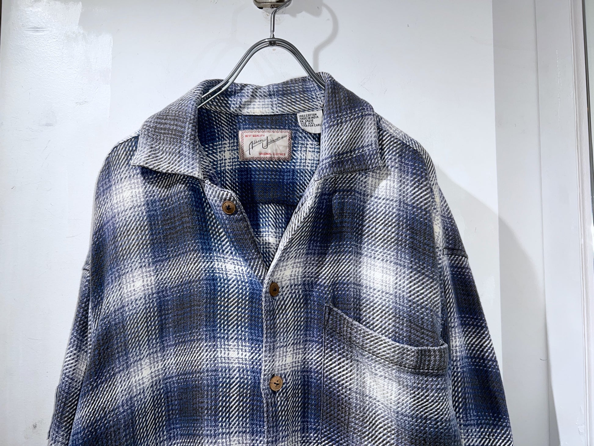 ブルーとホワイトの良色のチェック柄のシャツ。