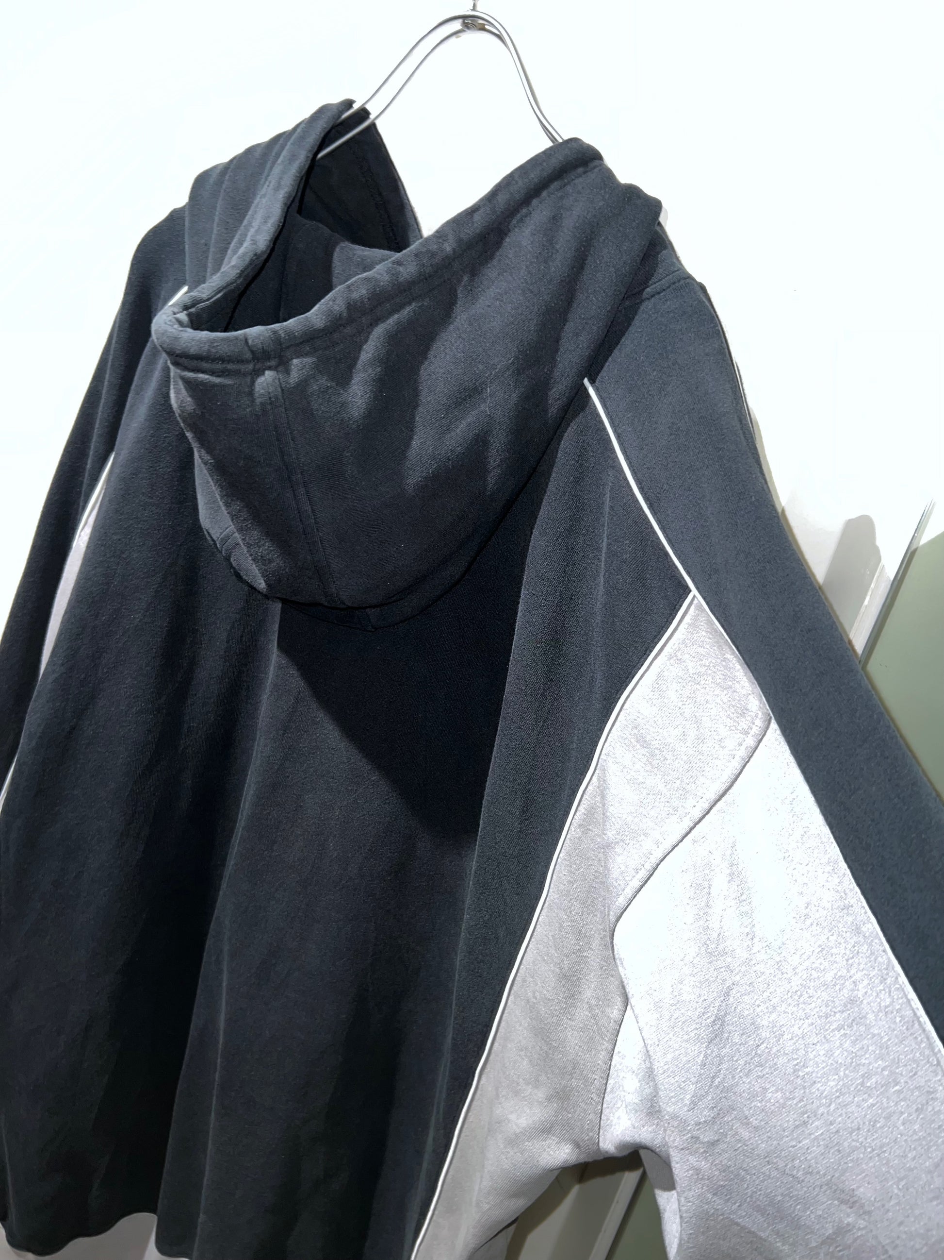 脇から袖にかけてグレーの切り替えパネル。