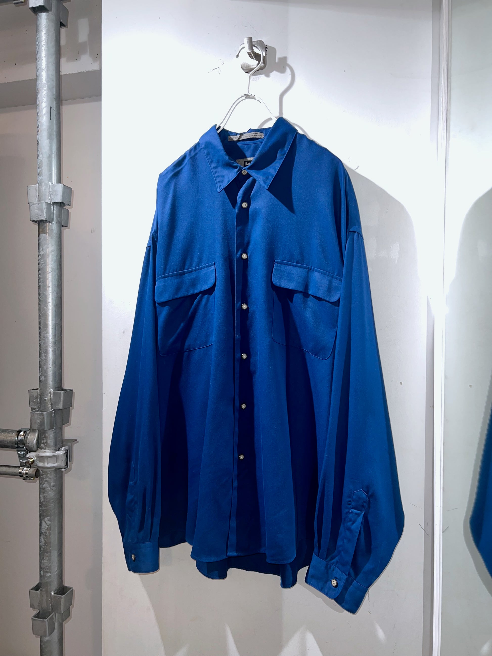 深く、鮮やかなロイヤルブルーが目を惹くレーヨンシャツ。