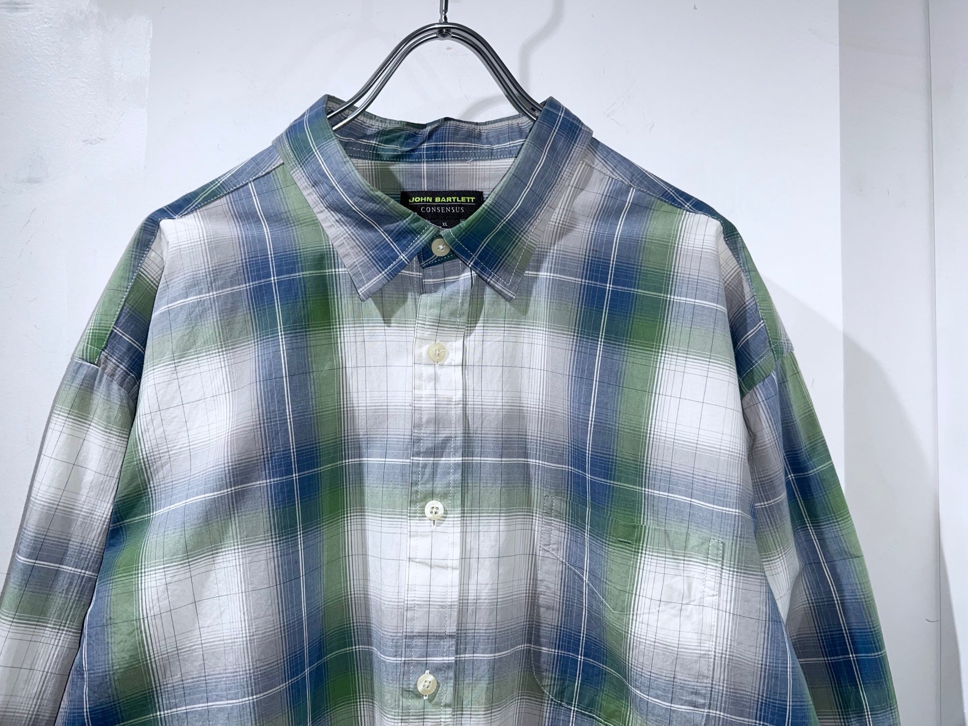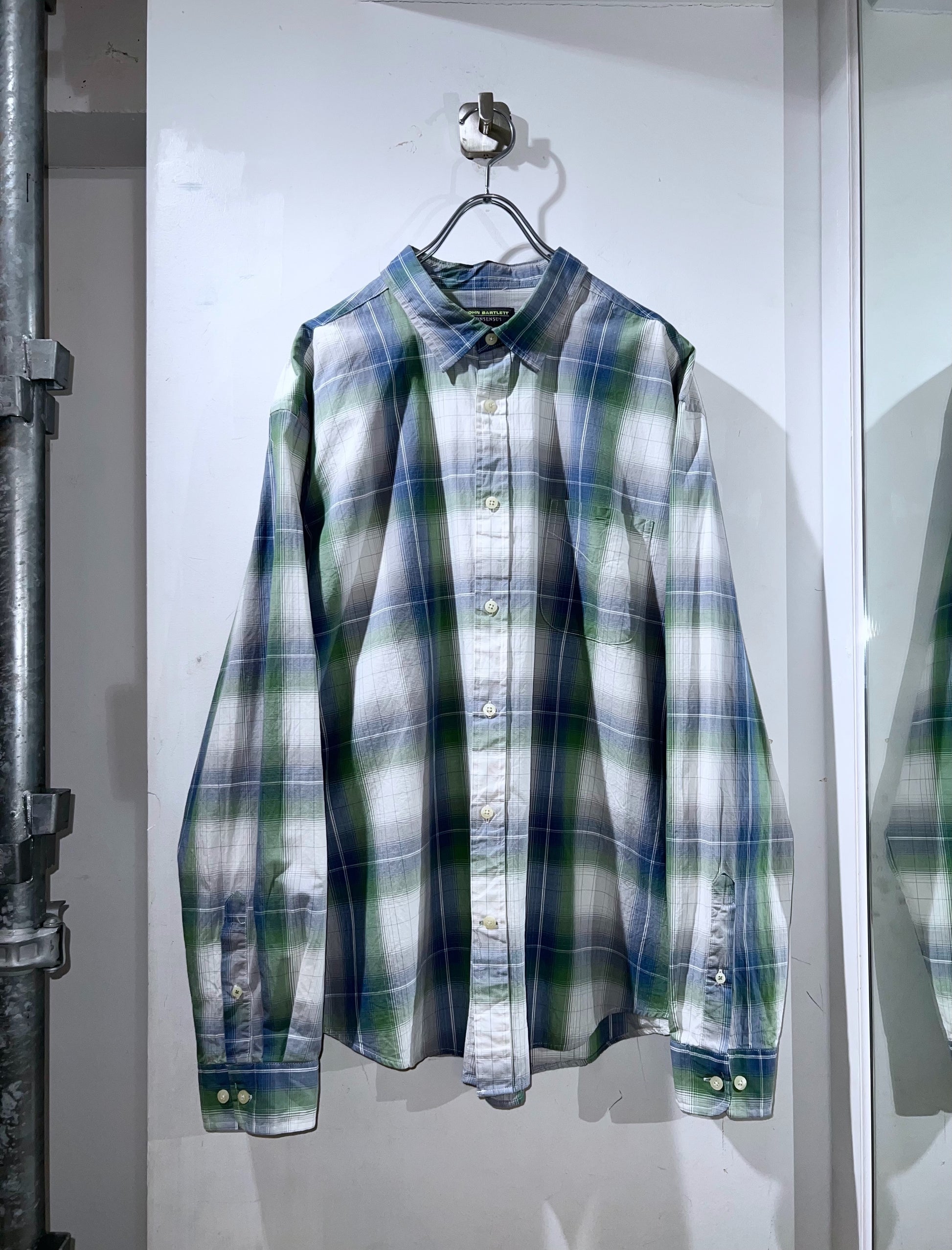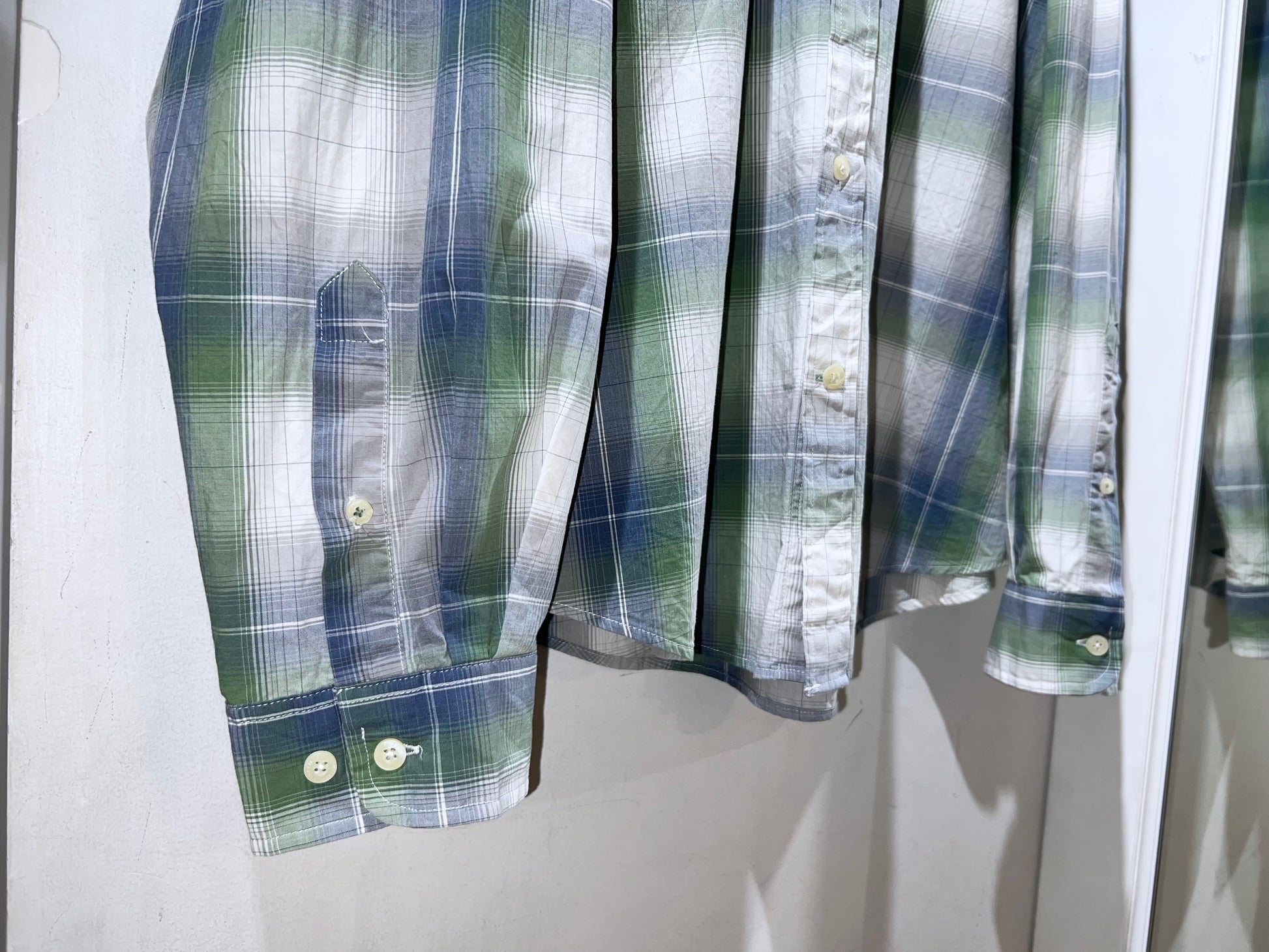 ブルーとグリーンが淡く溶け合う、どこか儚げなオンブレチェックシャツ。