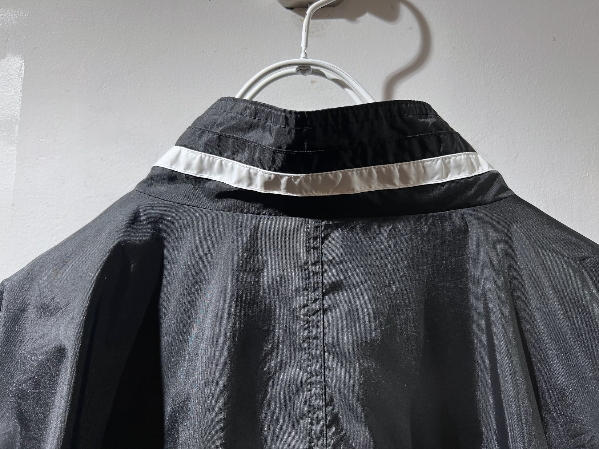 大胆な切替デザインが特徴的なナイロンジャケット。