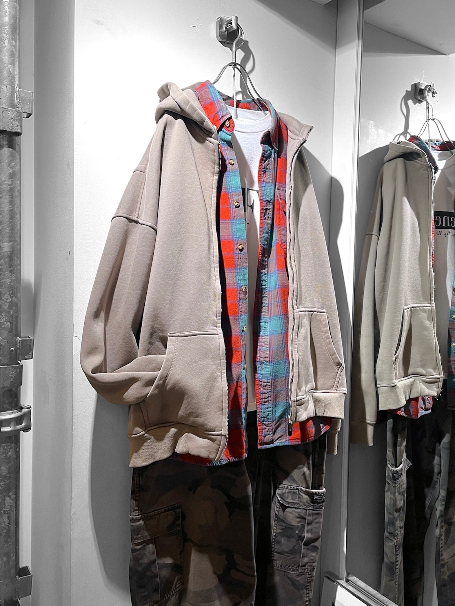styling / Fear of God double zip hoodie, 90's Vintage beneFit Tee