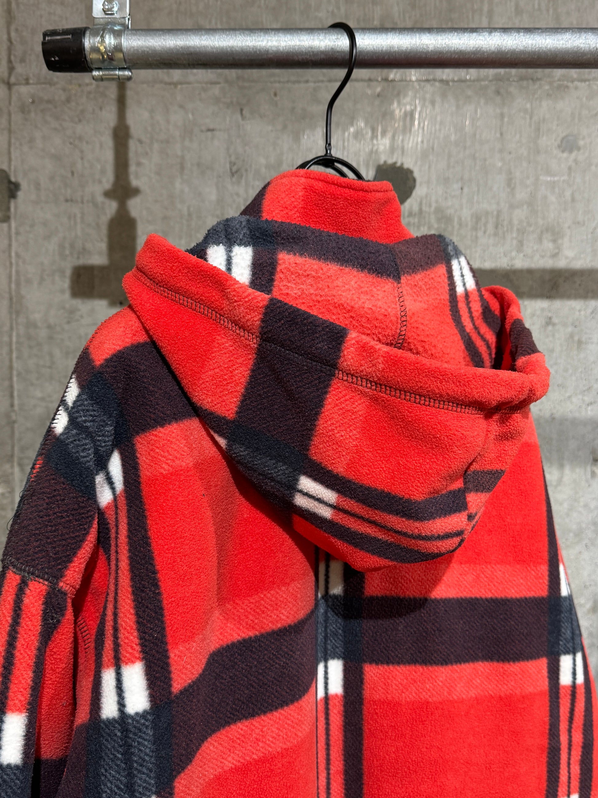鮮やかなレッド×ブラックのチェック柄がかわいすぎるヴィンテージのフリースジャケット。