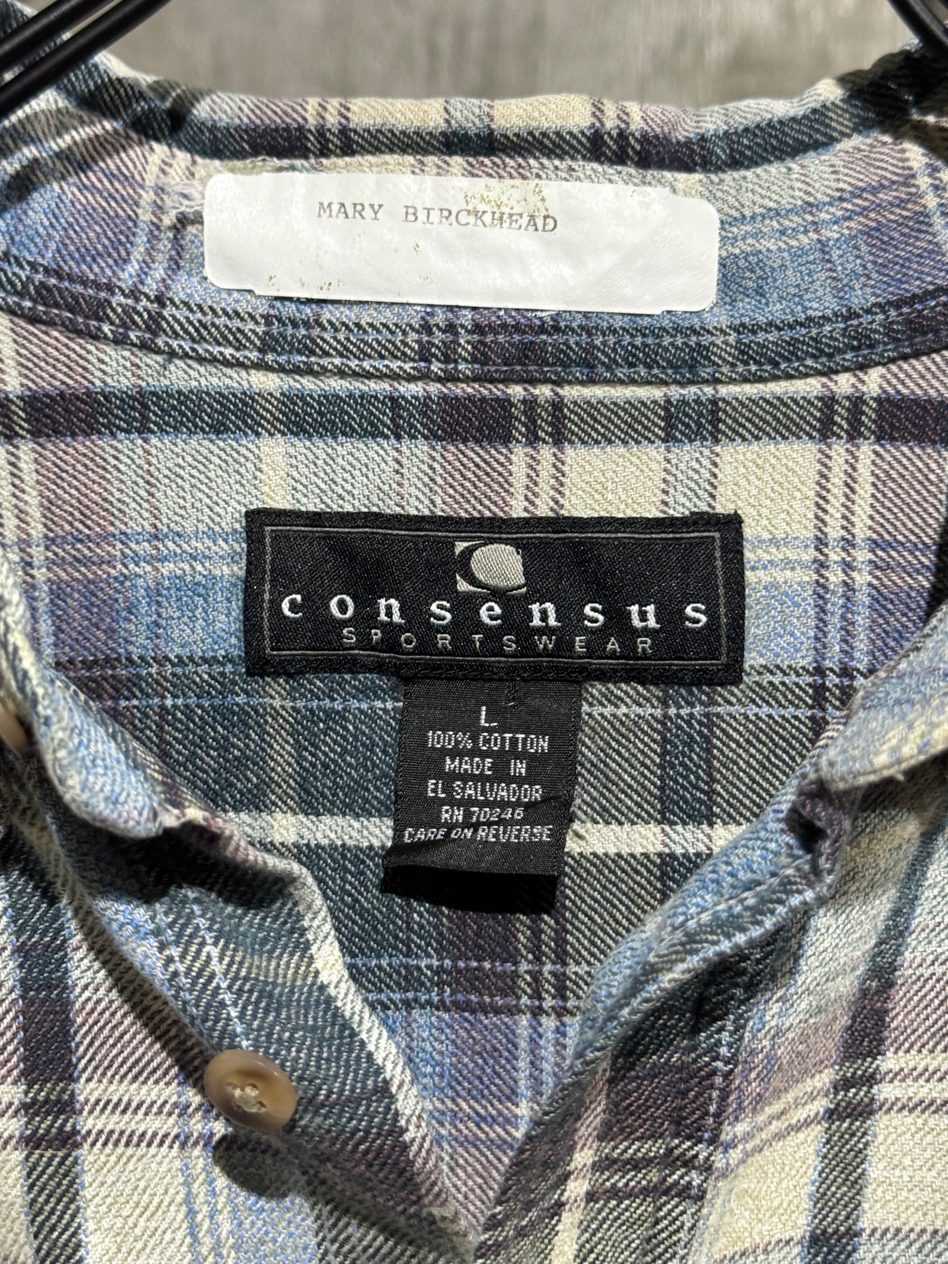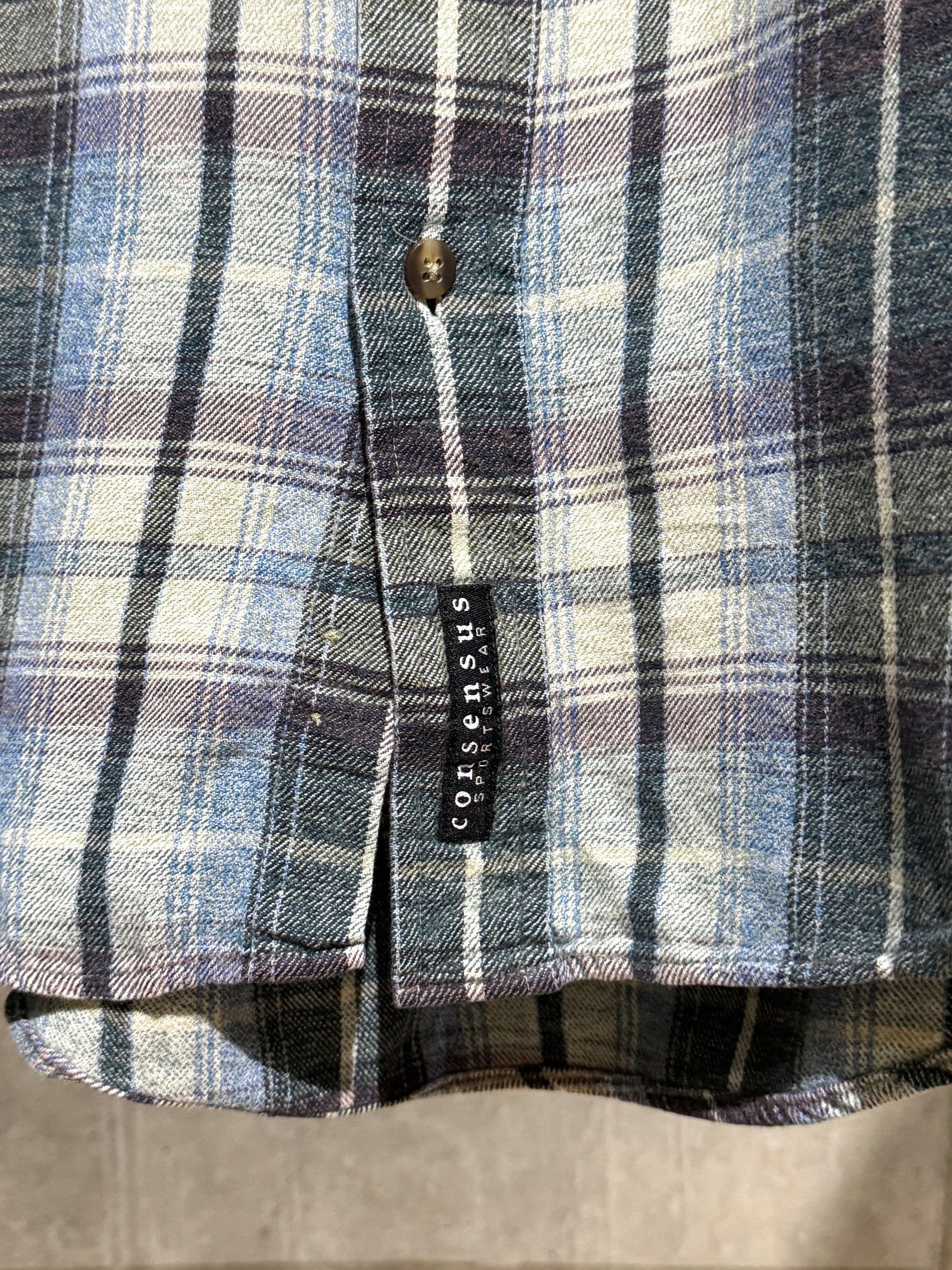 ありそうで無さそうな絶妙な色合いのチェックシャツ模様。