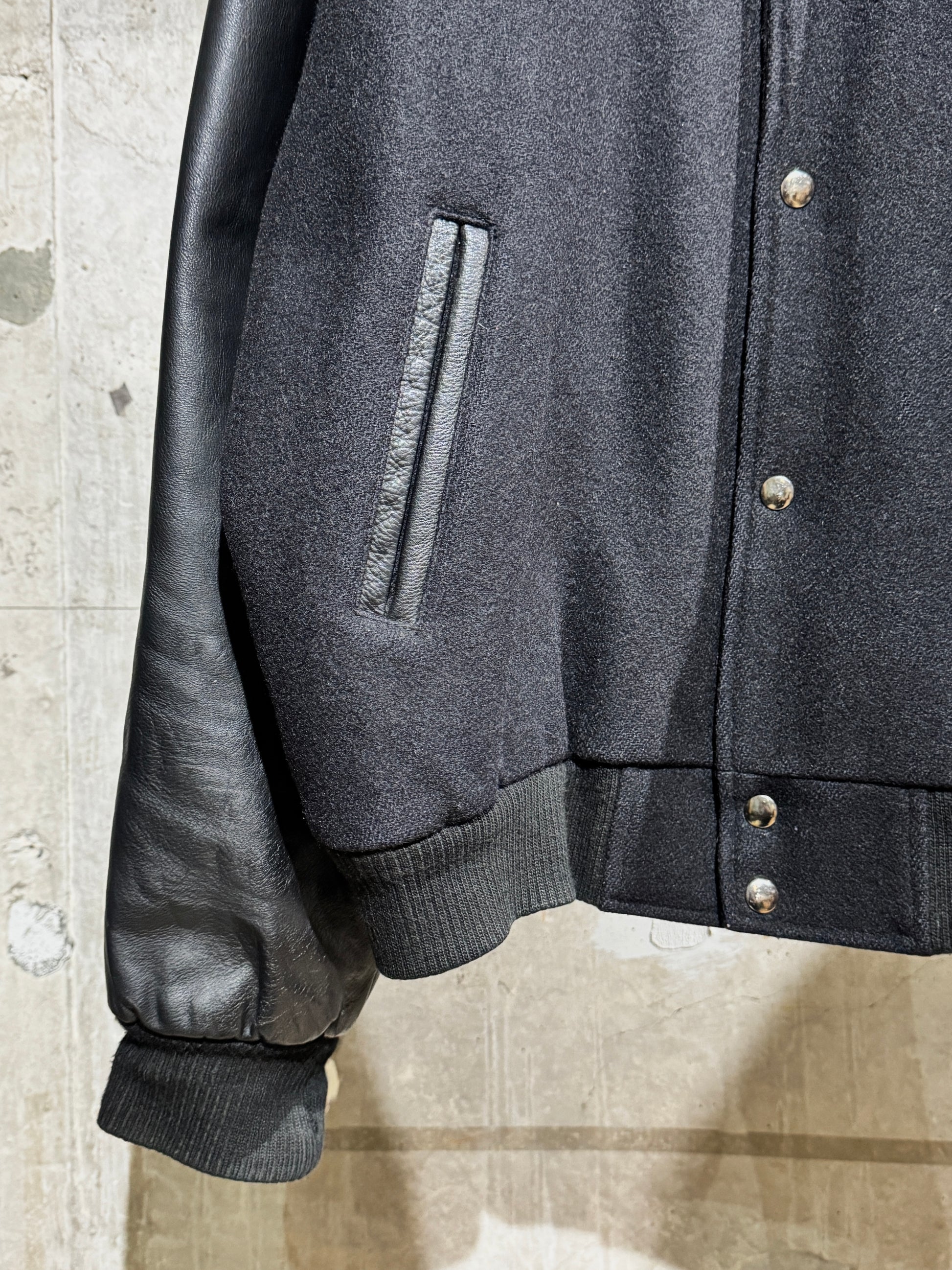 ボディは目の詰まったウール、袖はタフなレザー。